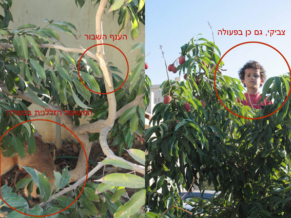 השנה לראשונה אחרי חורף מוצלח הניב עץ הליצ’י שלנו פירות מדהימים, אורי התלבש על העץ, טיפס על החומה מאוחוריו ויום יום הוריד לעצמו לפחות 10 ליצ’ים